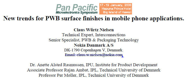 In addition to these, Claus has held numerous customized seminars at the request of private companies.May 2024: SMTA, Electronics in Harsh Environments Conference at DTU, Denmark. Keynote presentation title: Design for high reliability in Harsh Environments.Sep 2022: DfX seminar, Odense, Denmark. In cooperation with Force, GPV, ICAPE. Title: DfX – What, Why and How.June 2017: Asymtek Technology Days, Geldrop, The Netherlands: Title: Coating considerations.June 2015: Asymtek Technology Days, Maastricht, The Netherlands: Title: Why and When is Coat and Underfill needed?Apr 2015: HIN Seminar, Horsens, Denmark: Why and when is Coating and Cleaning needed?Oct 2014: Article in the Danish Electronics News Magazine “Elektronik & Data” October edition: "Coating beskytter elektronikken".Aug 2014: Article in the Danish Electronics News Magazine “Elektronik & Data” August edition: "Dybt i Nokias maskinrum".Jun 2014: PCB Reliability Seminar, Copenhagen, Denmark: How to improve PCB/PCBA design, performance and reliability.Mar 2013: SPM Erfagruppe 20 – DFMA – Design For Manufacturing and Assembly meeting hosted by B&O, Struer, Denmark: From DIL-packages to Embedded Components. The evolution of Component Packaging-, Interconnection- and Substrate-Technologies.Nov 2012: IPU “Corrosion in Electronics” Seminar, Lyngby, Denmark. Title of presentation: Organisation structure impact on reliability problem solving.Dec 2011: Printline Seminar at the Danish Embassy in Oslo Norway.Title of presentation 1: From DIL-Packages to Embedded Components. Title of presentation 2: Interconnect reliability problems and solutions.Nov 2011: Printline Seminar, Odense Denmark. Title of presentation 1: From DIL-Packages to Embedded Components. Title of presentation 2: Interconnect reliability problems and solutions.Jun 2011: Asymtek Technology Days, Heerlen the Netherlands: Title: Micro Coating and Underfill – a must to obtain high reliability of mobile devices.Apr 2006: ICEP Conference, Tokyo Japan: Title: Paradigm shift for PWB surface finishes in mobile phone terminals.Feb 2006: Pan Pacific Electronic Symposium, Hawaii, Title: New trends for PWB surface finishes in mobile phone applications.2004: IMAPS Nordic Conference, Helsingør Denmark: Title: The evolution of surface finishes in mobile phone applications.2003: DAMAG Temadag for printdesignere, Odense Denmark: Title: Kultryk på print.1993: Articles in the Danish Electronics News Magazine “Elektronik & Data”: June edition: Laser trimming Thickfilm Hybrids. October edition: “Chip & Wire” techniques1991: Article in the international magazine “Circuit World” Vol.17, Number 3: Design Guidelines for Polymer Thickfilm Technology.1990: Co-author to: Polymer Thickfilm Technology design guidelines and applications. A result of a Nordic cooperation project (1988-1990) supported by Nordic Fund for Technology and Industrial Development (Nordisk Industrifond). ISBN 82-992193-0-2.1990: Theme days at “Instituttet for Verkstadsteknisk Forskning” (Sweden), and at Elektronik Centralen (Denmark), Title: Polymer Thick Film Connection Techniques.1990: ISHM NORDIC Conference at Ålandsøerne (Finland). Title: PTF, An attractive supplement to traditional Thickfilm and PCB technology.1987: Polymer Circuit and Component Board (PC2B). EC-report ECR-202.1986: ISHM NORDIC Conference in Helsinki, Finland. Title: Results from the PTF Research Project “PC2B” at a-s Elbau, funded by Teknologistyrelsen.1986: Elbau and Radiometer Electronic Theme Day at Hotel Eremitage (Denmark). Title: Undersøgelse af Polymer TykFilm teknologiens muligheder og begrænsninger.1986: EKF-seminar at Hotel Holmenkollen (Norway). Title: Results from the joint Nordic project, PC2B.1985: Elektronik seminar 85, at Bellacenteret (Denmark). Theme: Production techniques in the Electronic Industry. Title: Polymer Circuit and Component Board (PC2B).